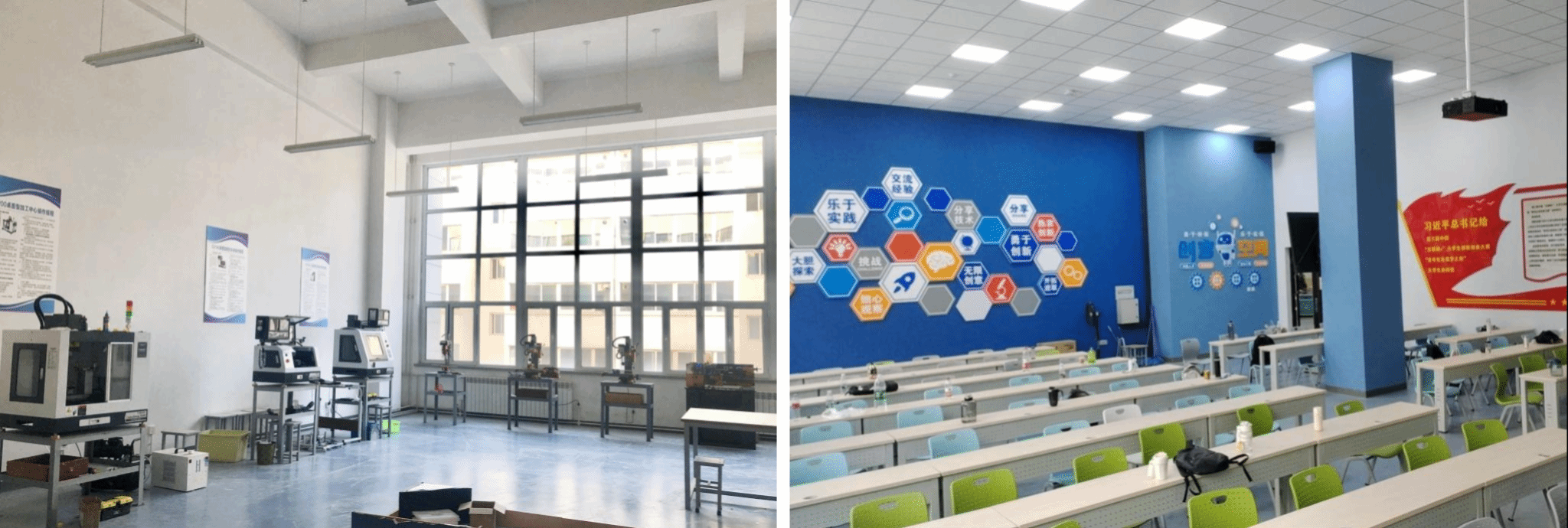 双创实践平台先后建成了智慧教室、致行众创空间、小型设备加工区、元器件共享库、大学生优秀创新创业成果对接交流中心等公共设施,向全校学生开放,为学生开展创新创业活动提供平台。